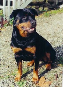 This mush ball of a rottie was used for 5 years in a puppy mill as a breeding dog. She had just finished weaning her last pups and the owners were finished with her so she got dumped. She was still lactating very thin and malnourished. She had endured endless beatings over her short 5 year life span and it showed when she was finally rescued. Happy to report that a year of training turned Angel into an amazing lap dog that gave everyone bum wiggles and rottie kisses.