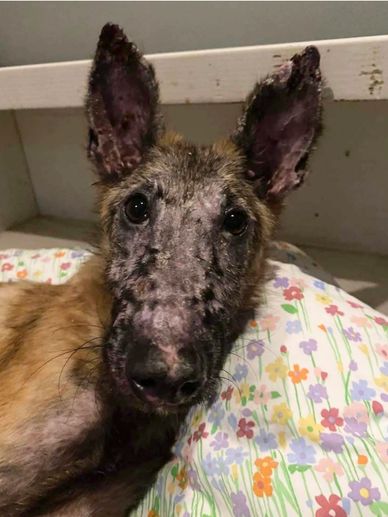 Colton Update: Colton was recovering and started to play with toys. His mange was clear and he was developing new skin on is face. 10 days in he had a grand seizure. He was rushed to two different ER clinics and his diagnosis was his seizures rendered his brain very badly damaged. 3 ER vets recommended to let him go because of the damage. I let him go and had him cremated and his ashes are with me. His eyes haunt me.