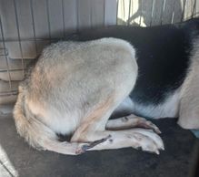 Tessa was in Riverside, a high kill shelter in SoCal. She was picked up as a stray and sent to the Coachella shelter. She stayed there for approximately one month and then was transferred to the Riverside shelter in a last ditch effort to have her adopted or pulled by rescue before they euthanized her. She's approximately 6 years old, sweet and friendly.