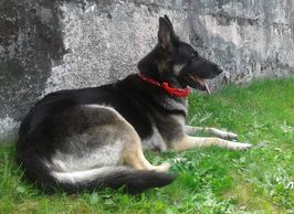 Bear is a 10 year old bi-coloured German Shepherd Dog that was dumped at San Bernadino shelter when his owner of 10 years passed away. The daughter did not want Bear so he was basically sentenced to death at the shelter. He was infested with fleas and has dermatitis. Once I got Bear, I got him into treatments right away and his skin condition cleared right up. He has such a sweet disposition and is a very calm boy.