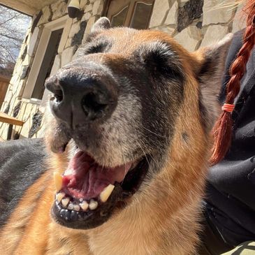 Bear is one big hunk of a German Shepherd. He weighs in at 110 pounds and is pure love and joy. He's dog friendly, people friendly, loves kids. He's got a very mellow personality and is a total chill dog. He was picked up as a stray and nobody came for him. Pretty alarming when you see how perfect of a dog he is.